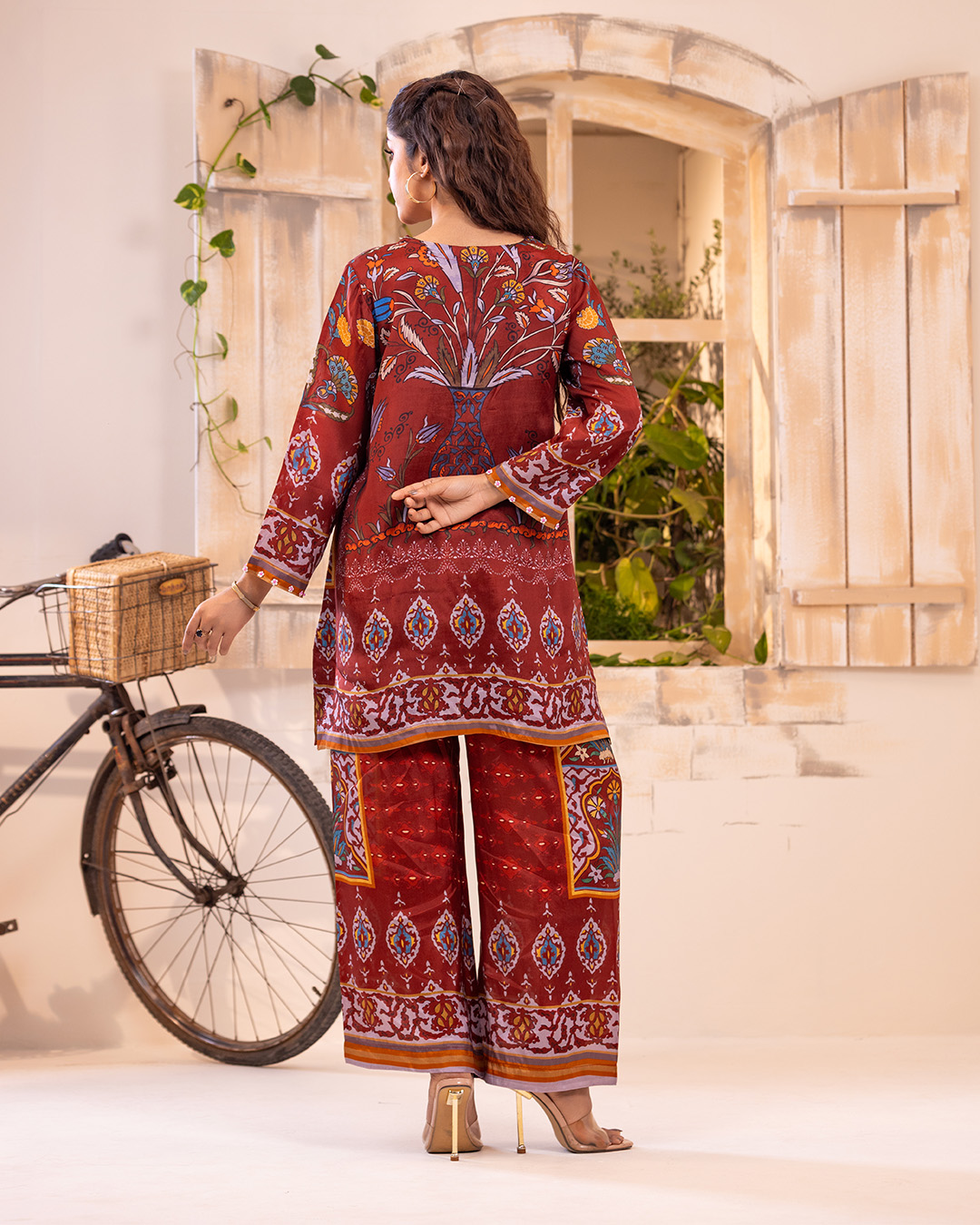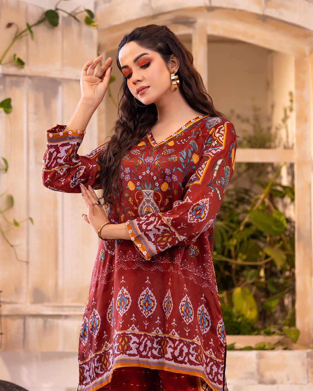 Fluid silk in a loose-fit silhouette, detailed with Turkish motifs and kilim patterns.