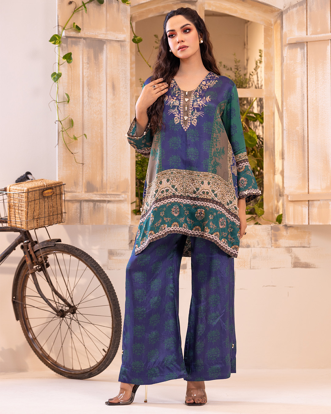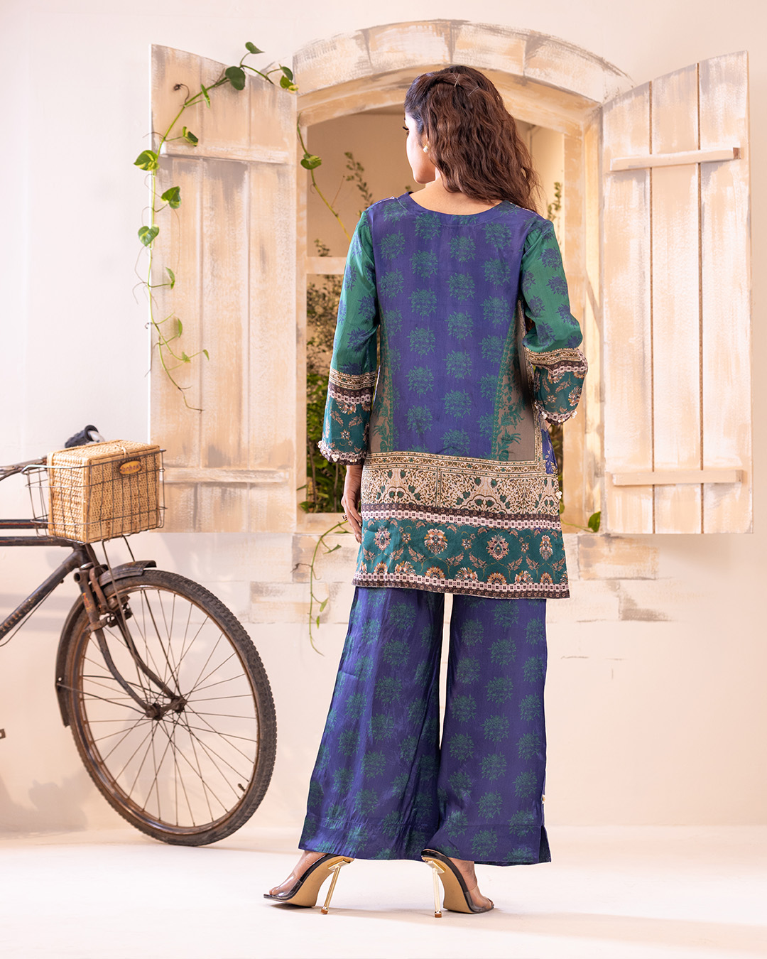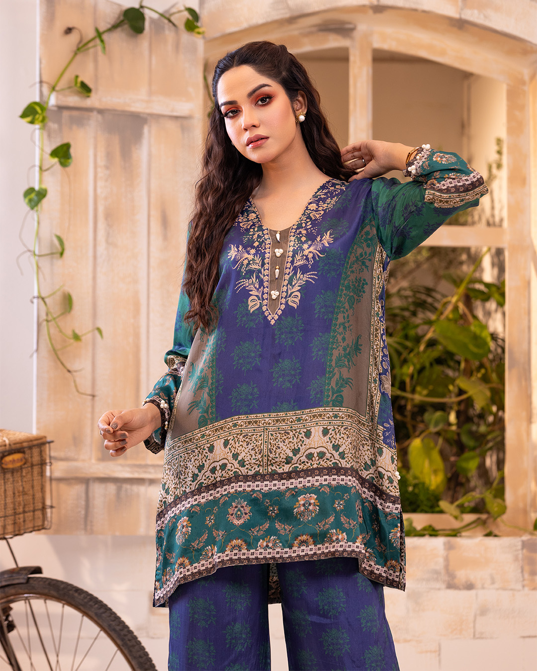 Emerald green meets deep blue, woven into fluid silk with timeless Turkish prints.