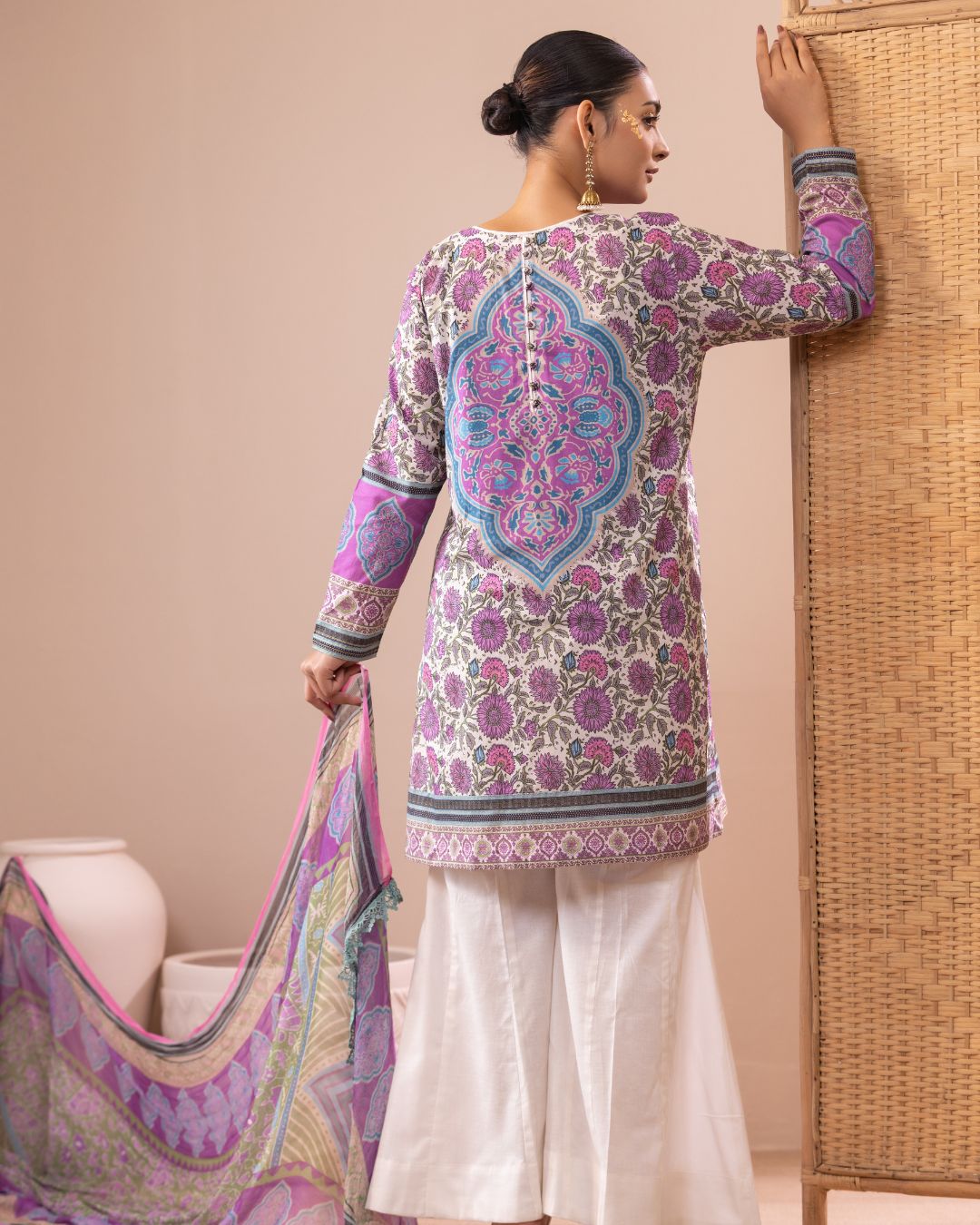 Details: Crafted in breathable lawn fabric with a Relaxed-fit short kameez, flare kali pant, and a lightweight chiffon dupatta.