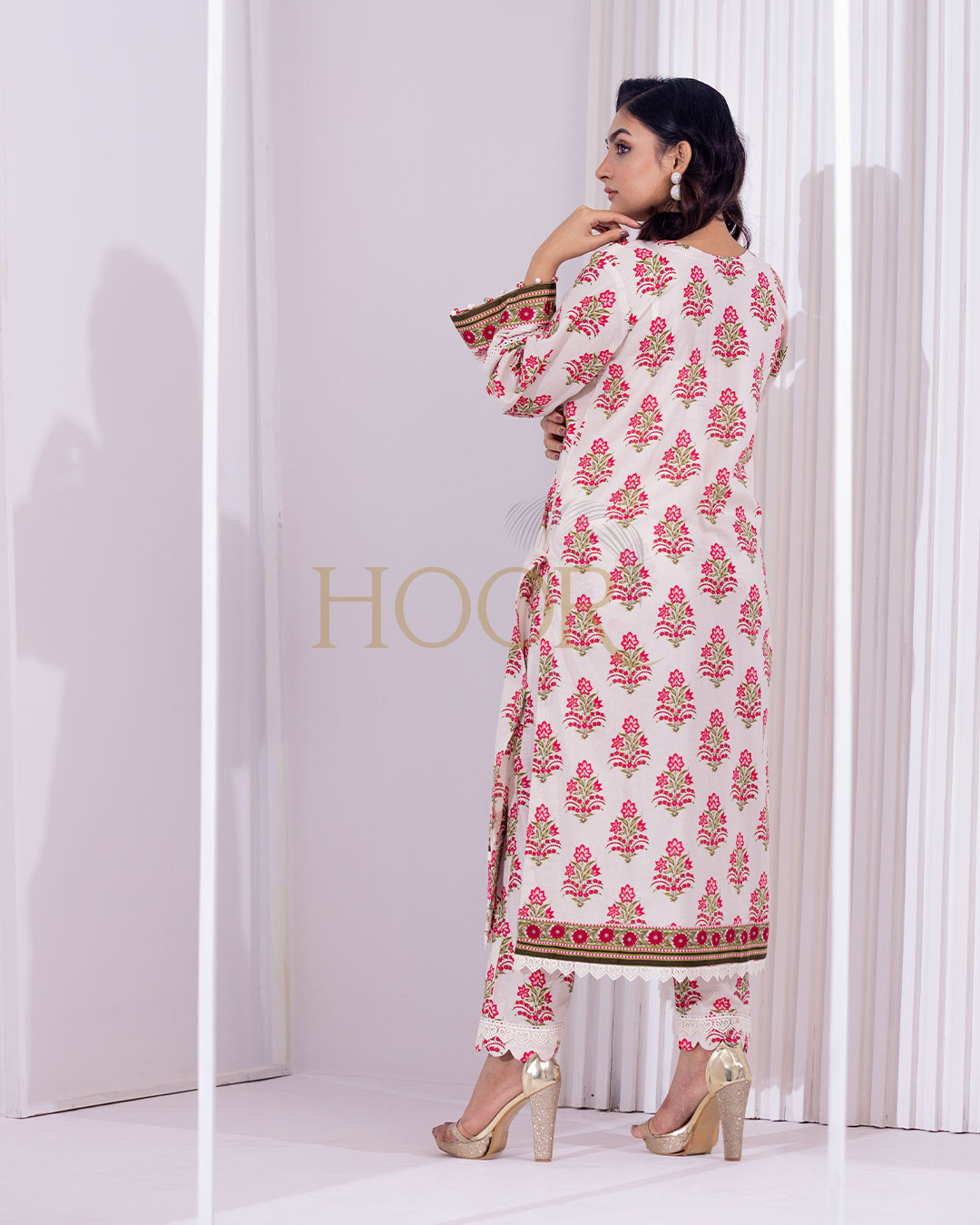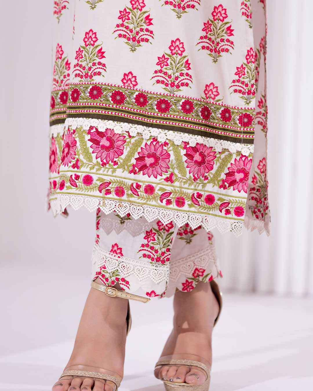 Printed Lawn Shirt with Embroidery Patch Printed Dupatta & Printed Cotton Trouser.