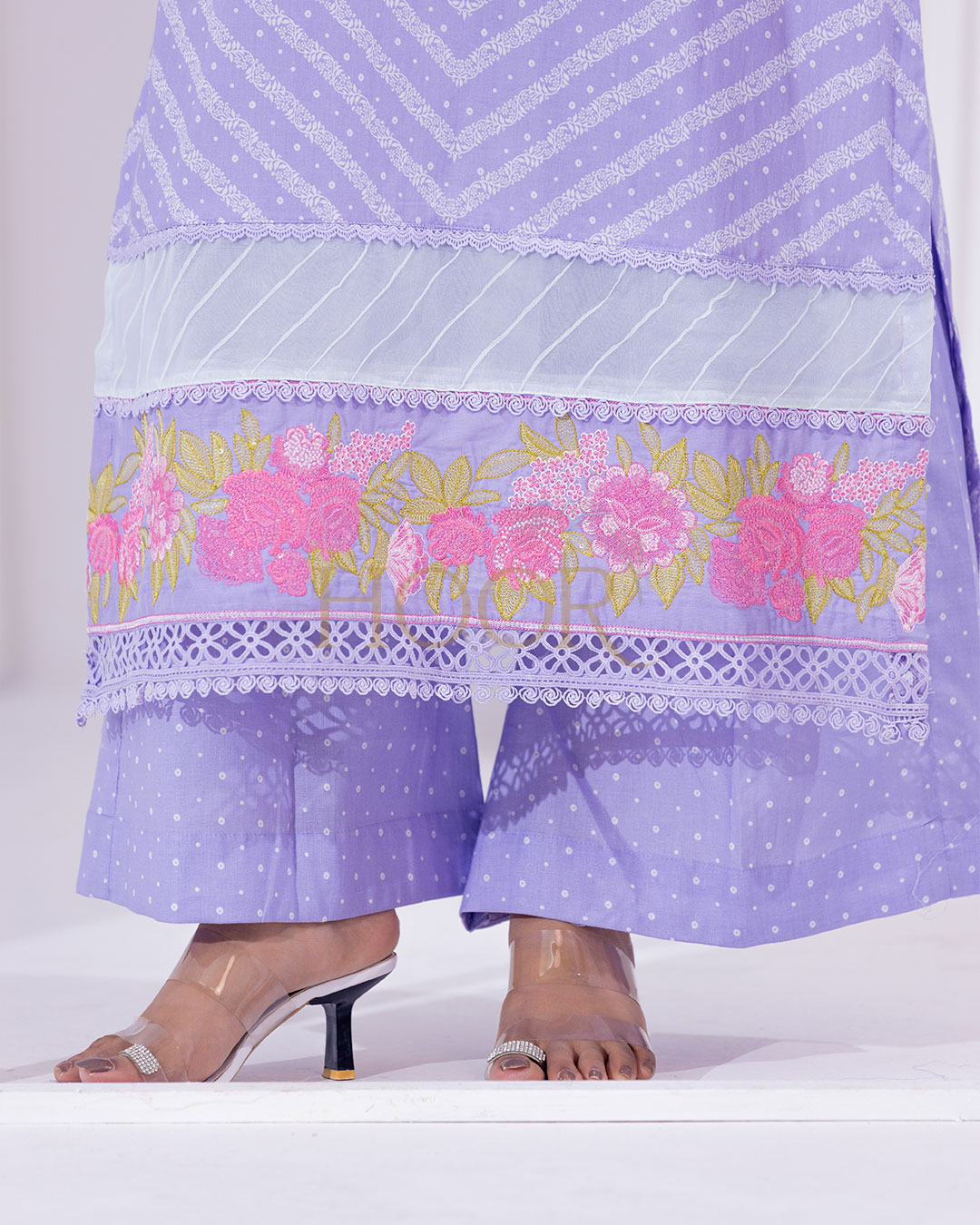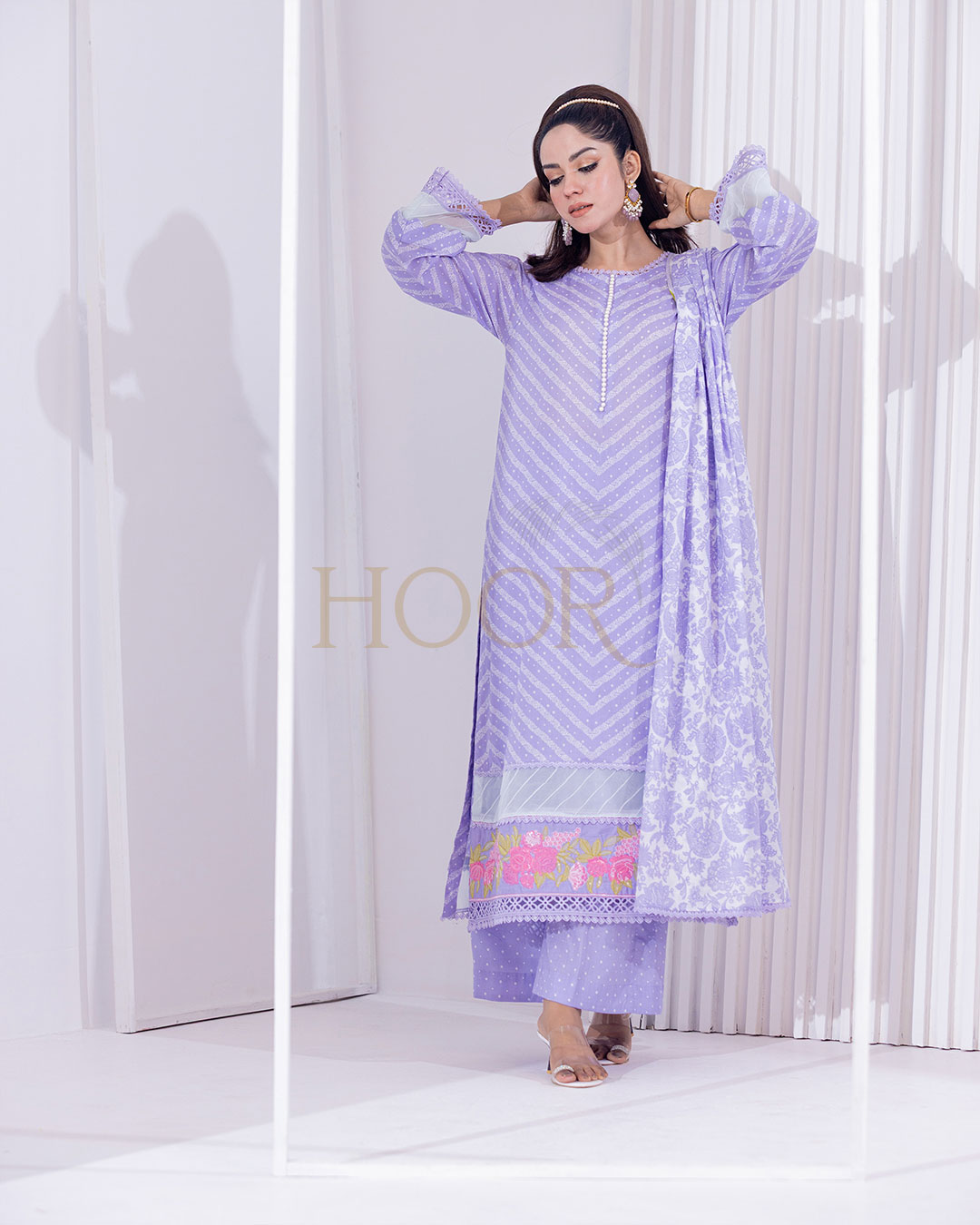Printed Lawn Shirt with Embroidery Patch Printed Dupatta & Printed Cotton Trouser.