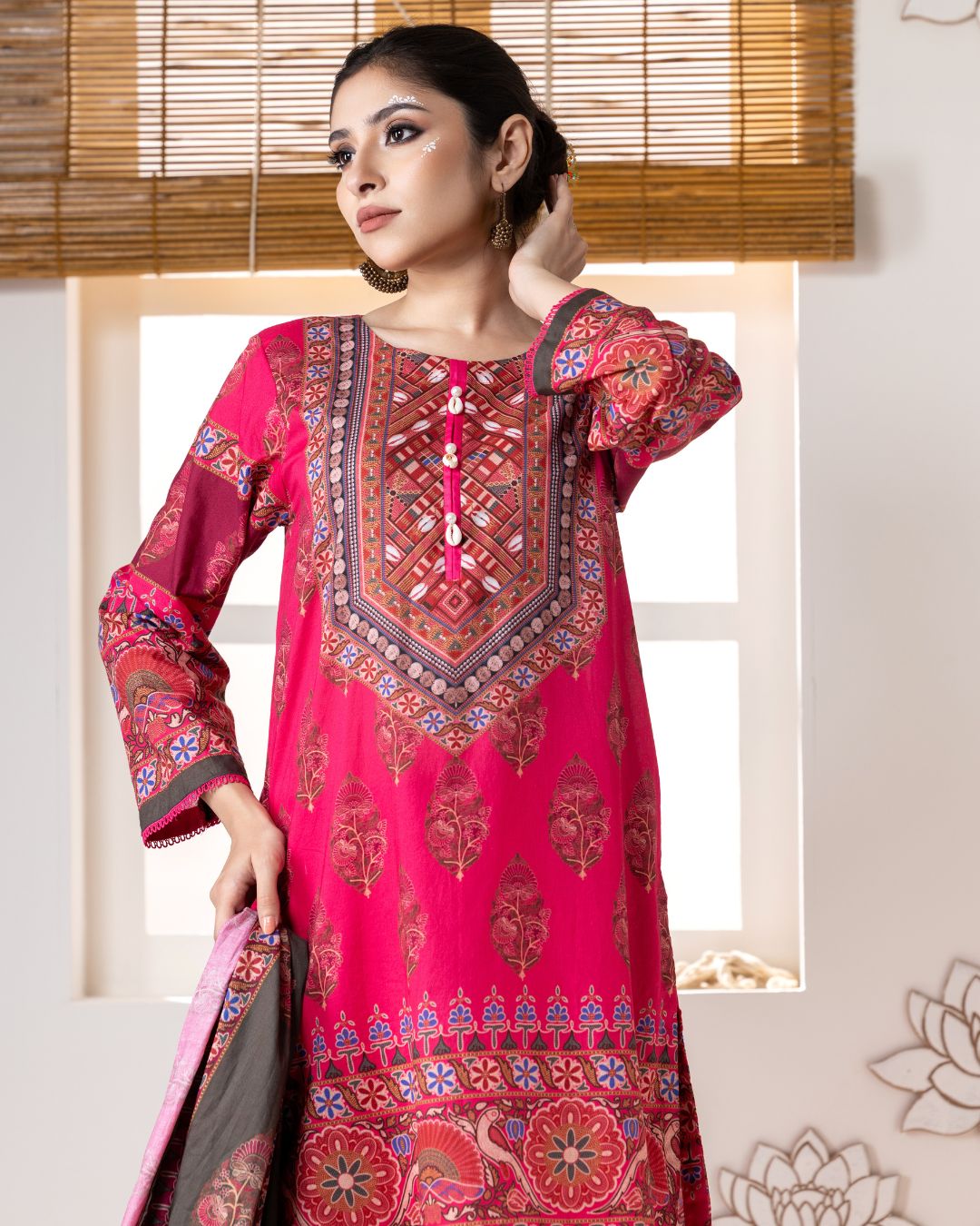 Details: Regular kameez paired with wide straight pants, designed for a graceful flow and a modern, comfortable silhouette.