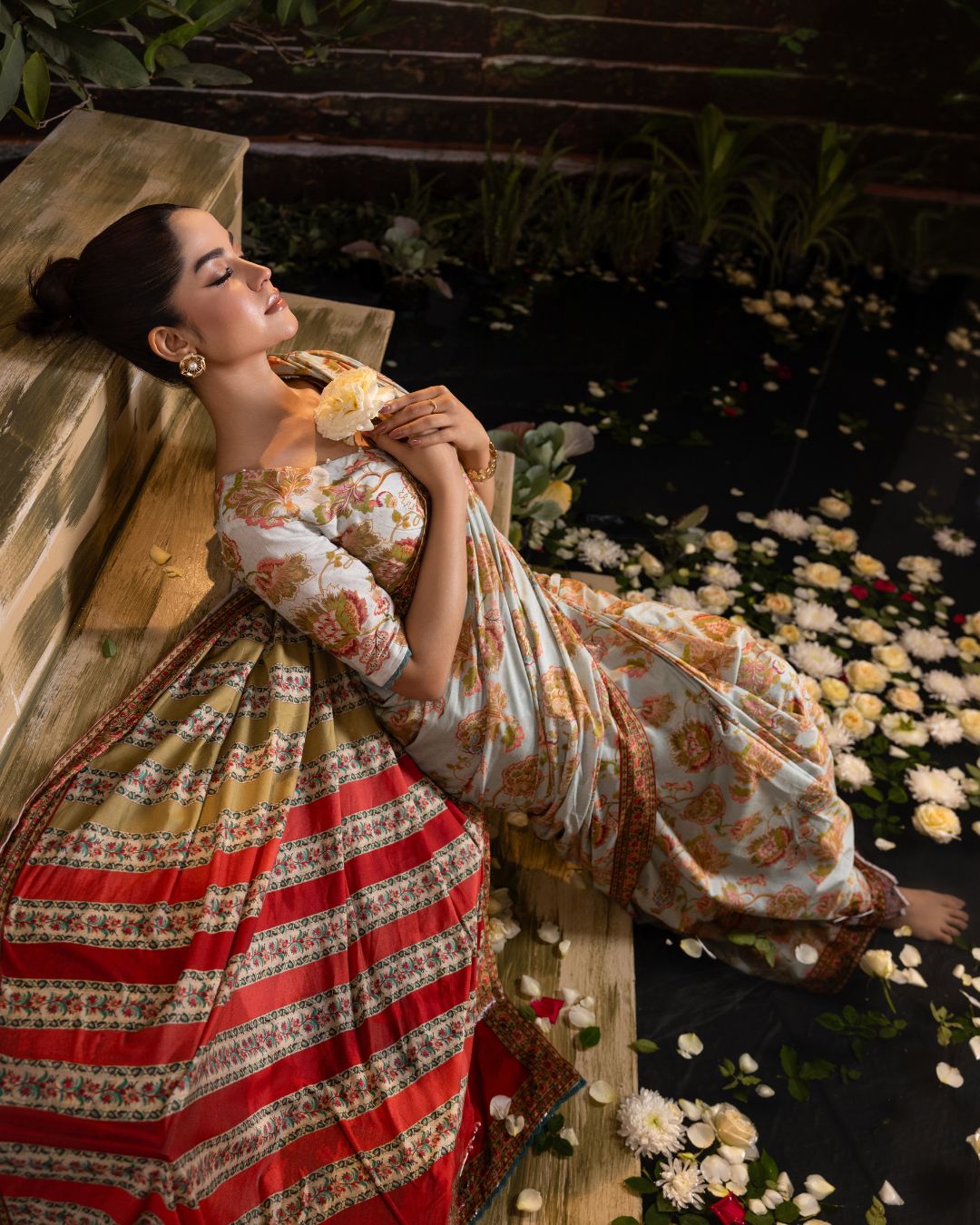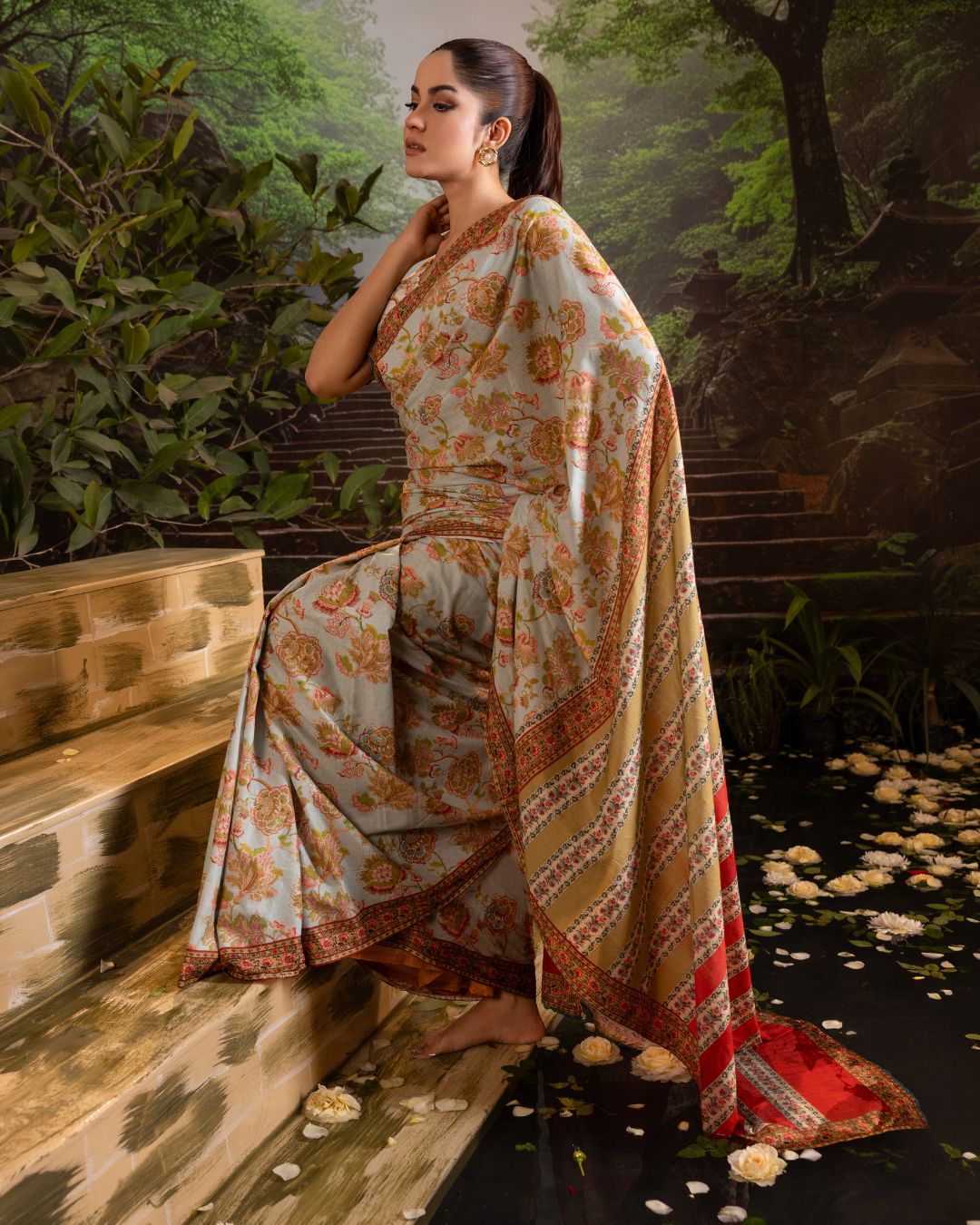 Blossom Lawn Saree features delicate floral digital prints on breathable lawn, offering a light, feminine drape that’s effortlessly elegant for everyday and festive daytime wear.