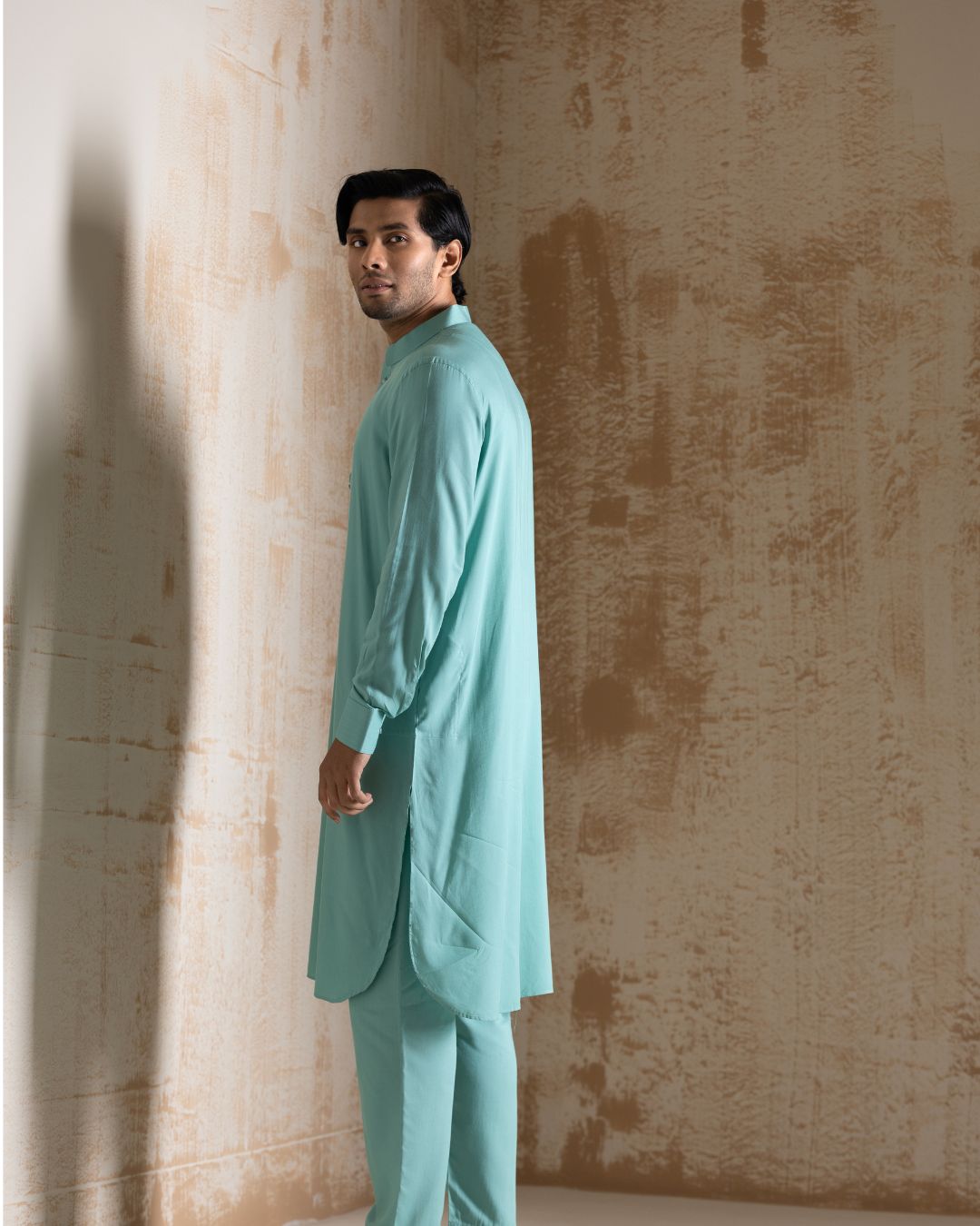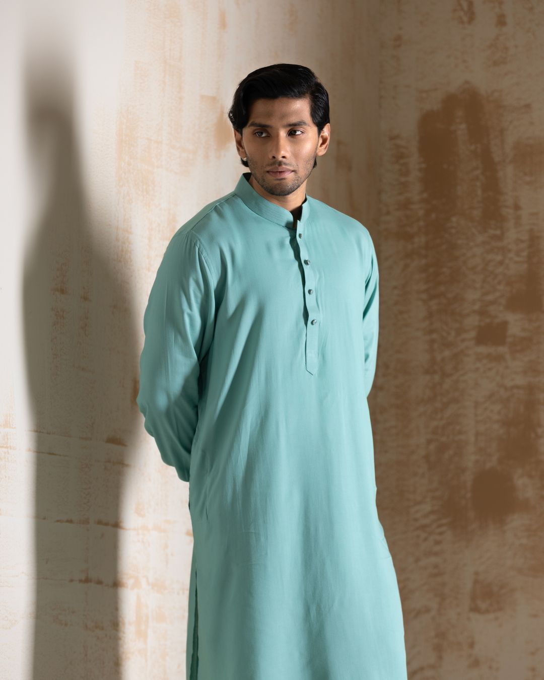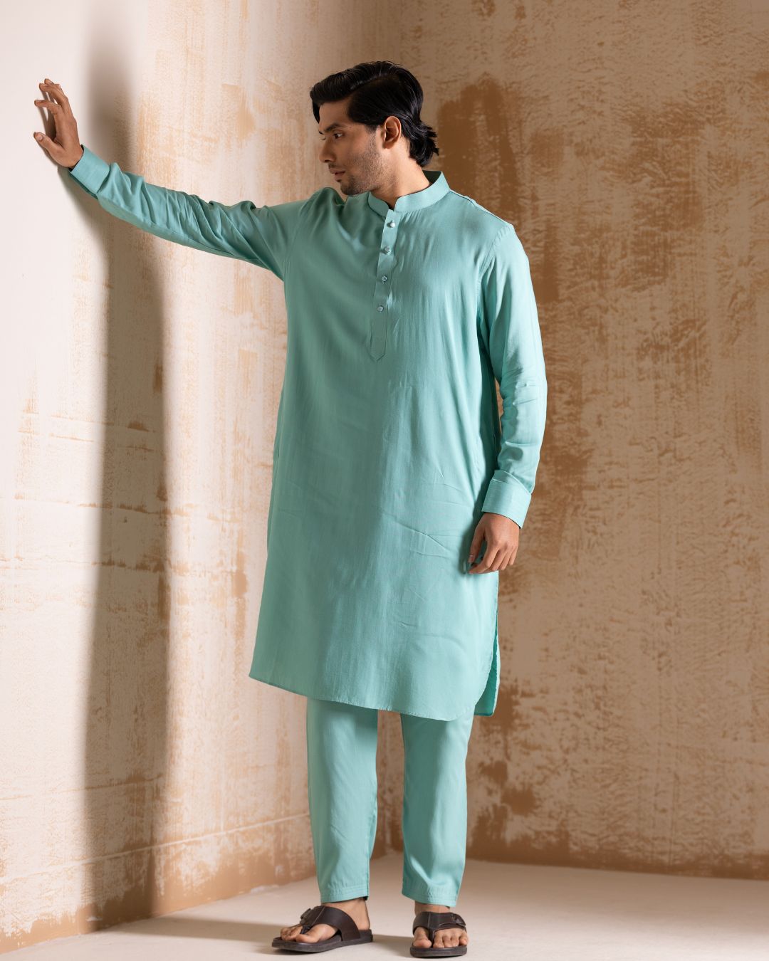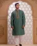 Details: Premium cotton blend Kabli set with a regular fit, full sleeves, and matching pajama — perfect for Eid and special occasions.