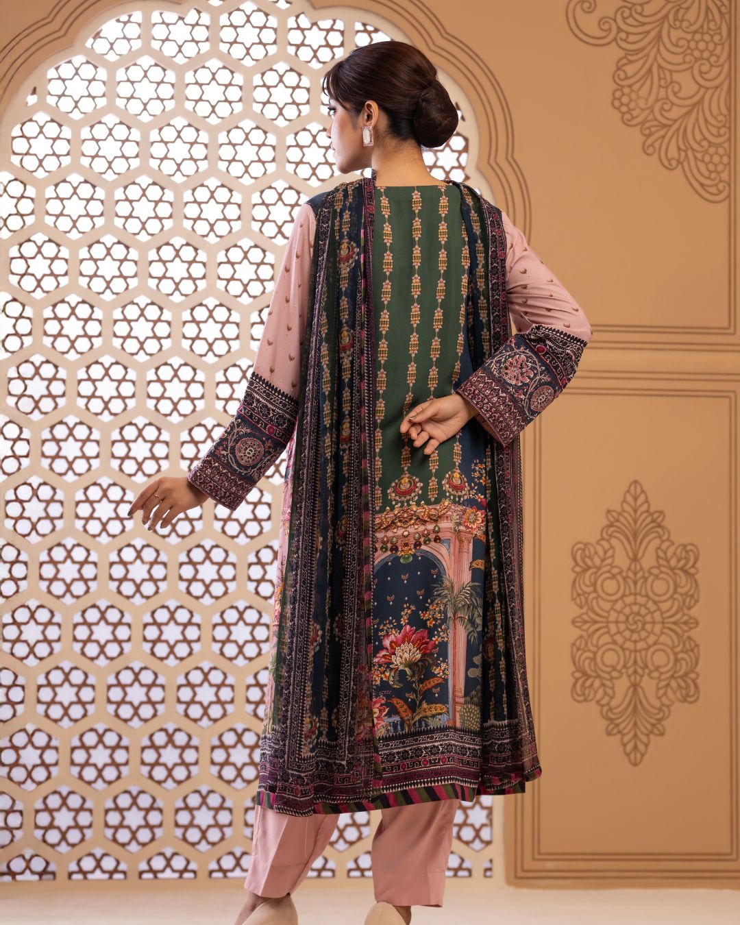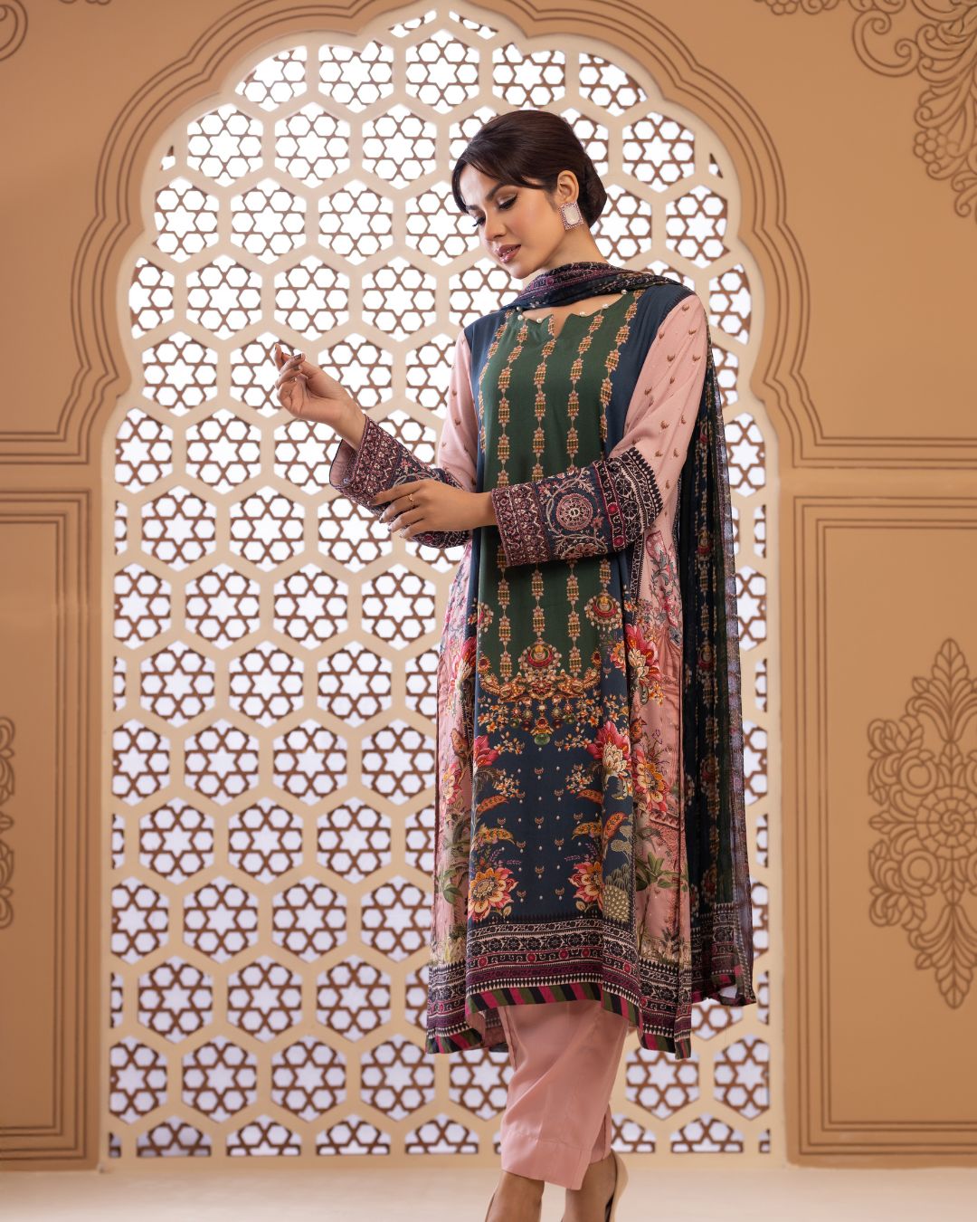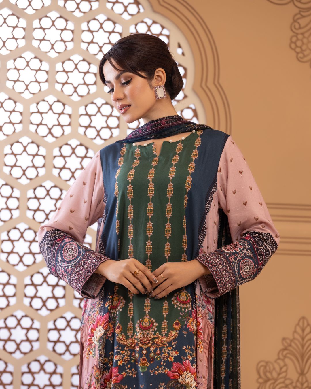 Shirt Details: Digital printed pure viscose shirt with zari and sequin embroidery-3.25 yard
