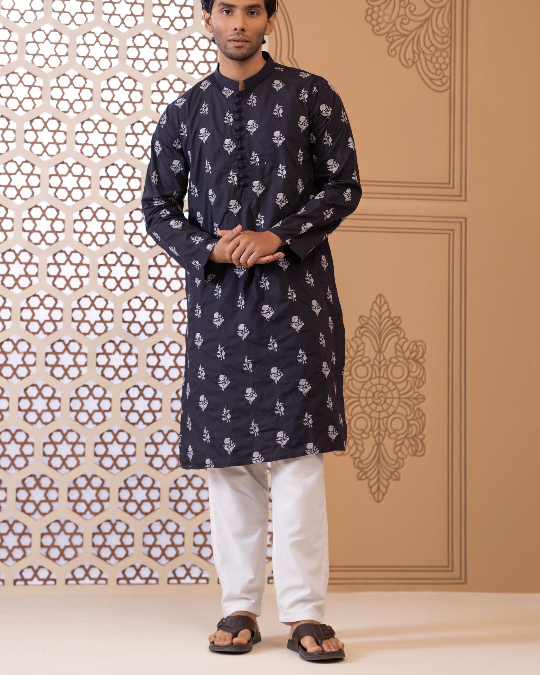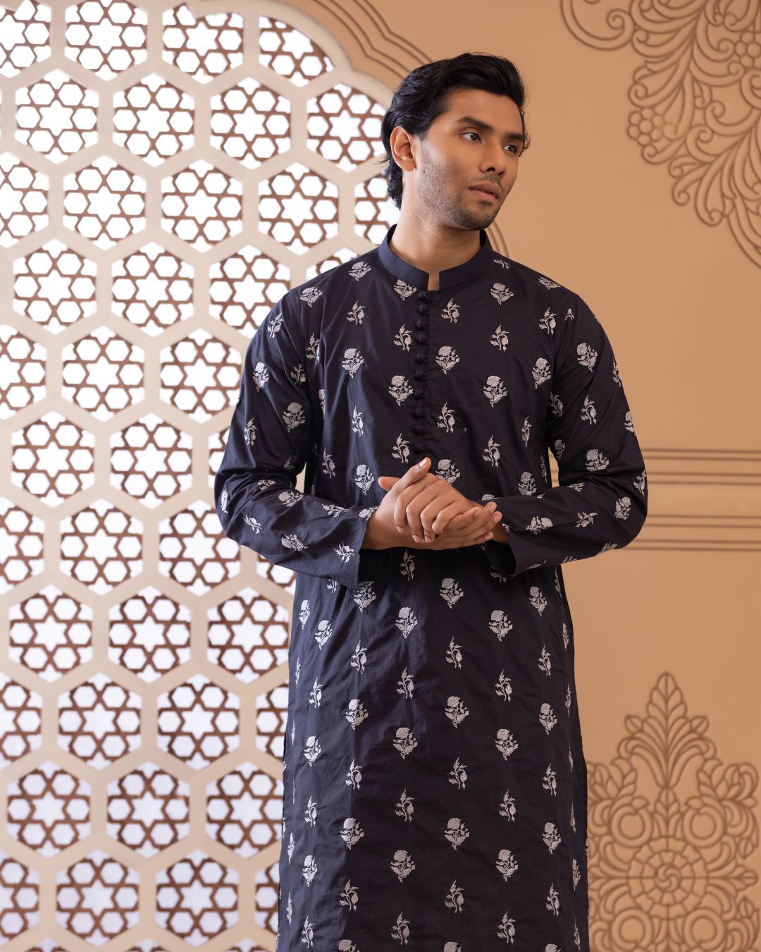 Details: This Panjabi is a perfect blend of tradition and modern minimalism. Crafted for comfort and style, the subtle beige tone paired with intricate detailing makes it an ideal choice for any festive or formal occasion.