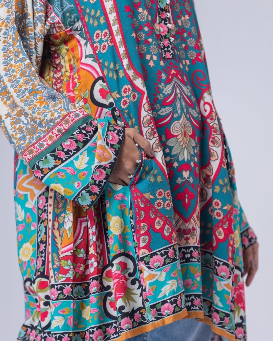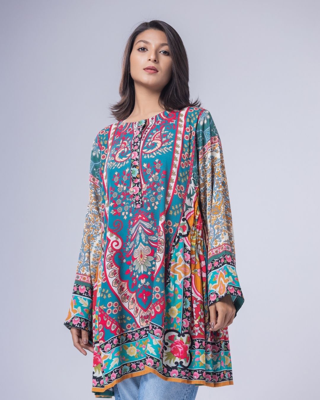Details: Fun, colorful, cheerful, and bright—this kurti merge funky elements to create an aesthetically pleasing look. Designed to be styled with jeans or tights, they carry an easy, casual, and playful vibe. Made for ultra Gen-Z and happy-go-lucky girls and women—because why not? We wear our hearts out. Styled with side pleats that add flow, keeping the silhouette short, modern, and effortlessly chic.