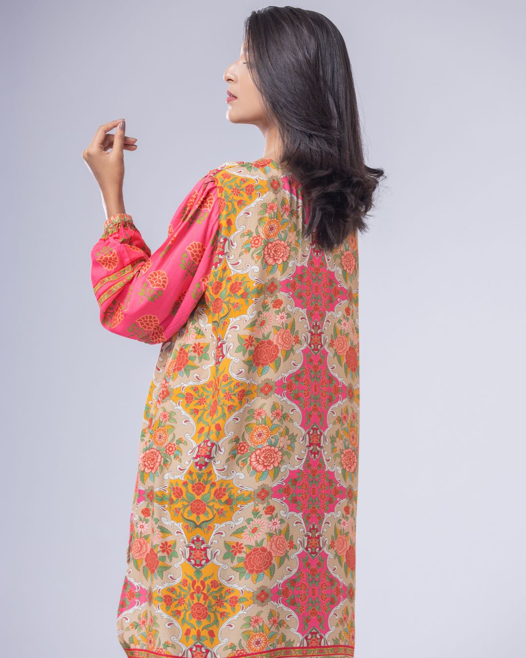| Loose fit- Front Open Short Kusrta with gathered Sleeves | |||