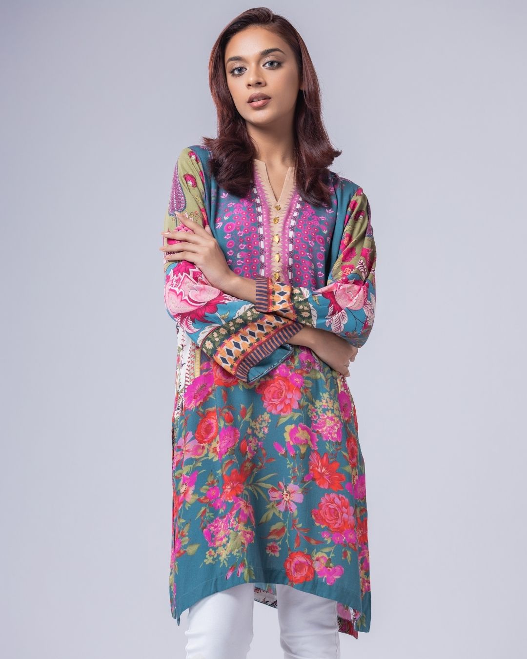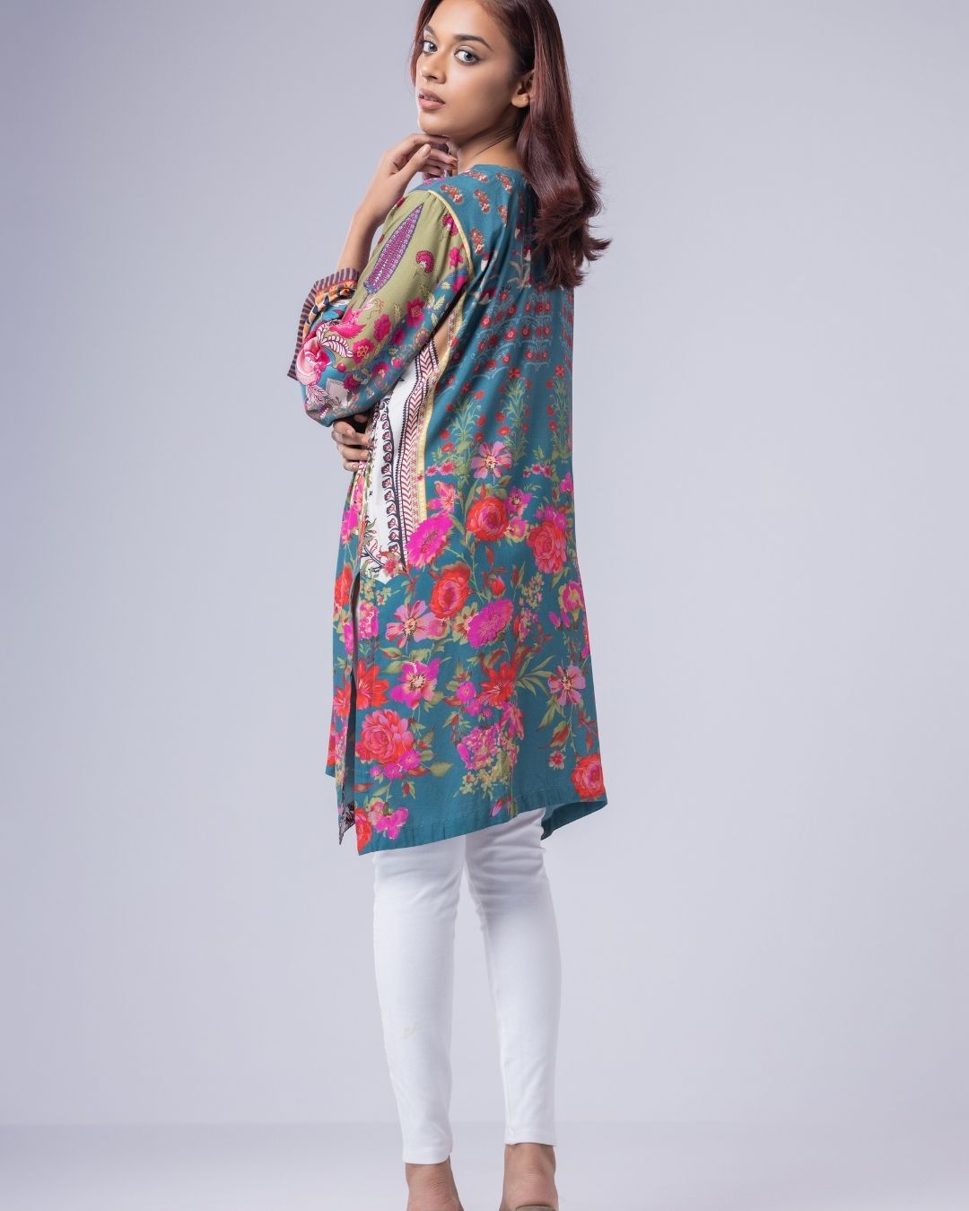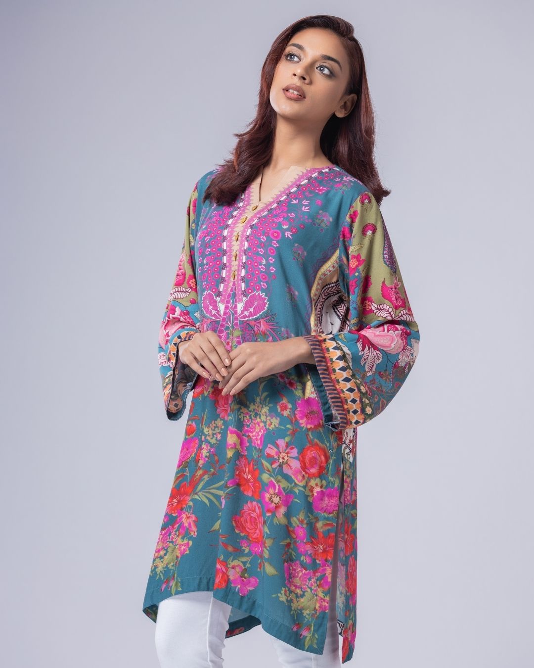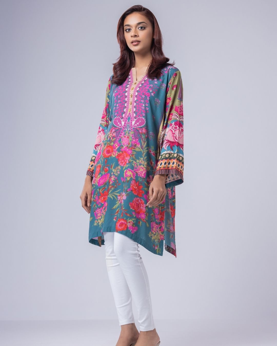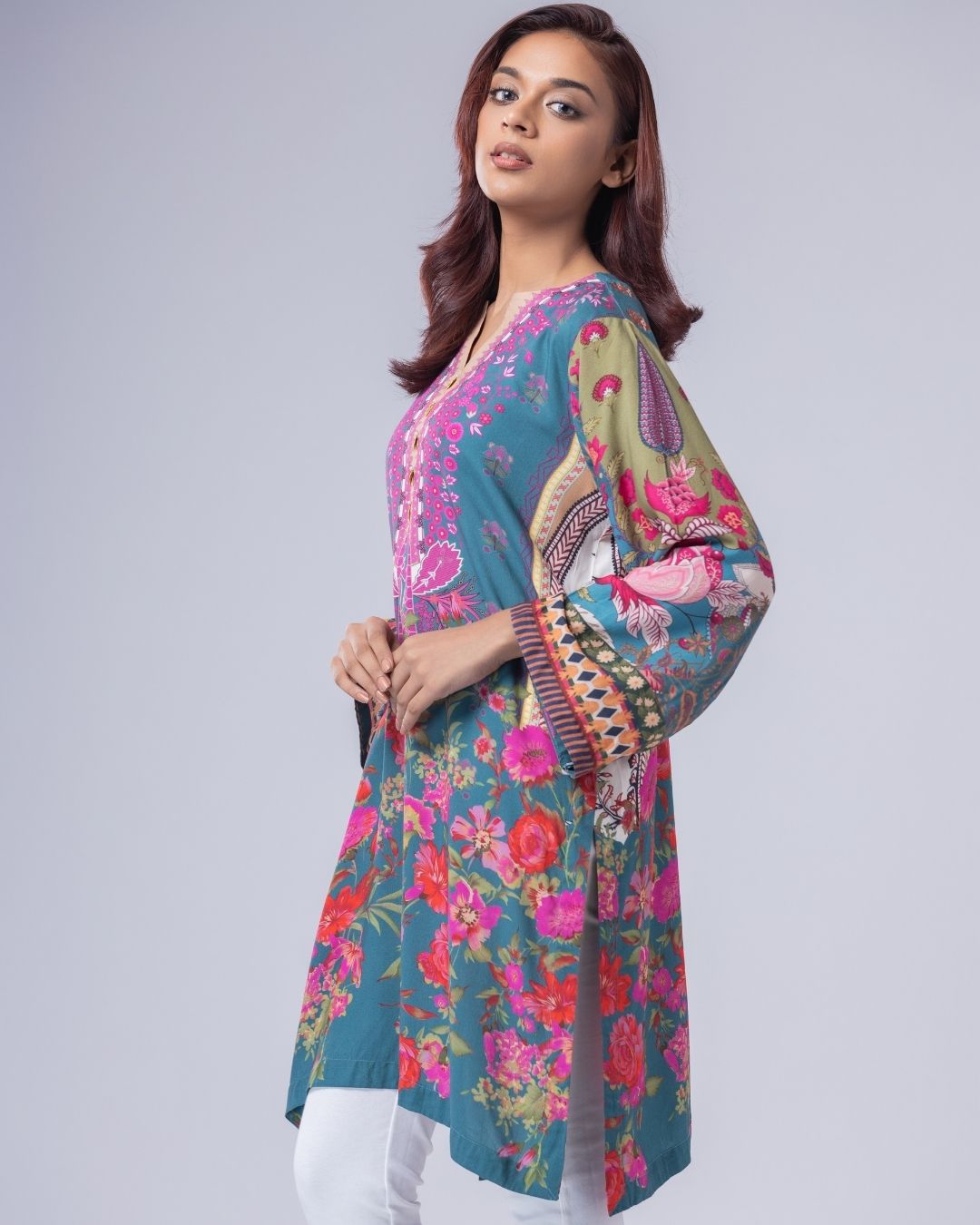 Details: A loose-fit, Semi Long Katuwa, designed in fun, funky colors for a playful statement. Featuring metallic and delicate pearly detailing, with a flattering neckline. Easy, modern, and perfect for a casual yet standout look.