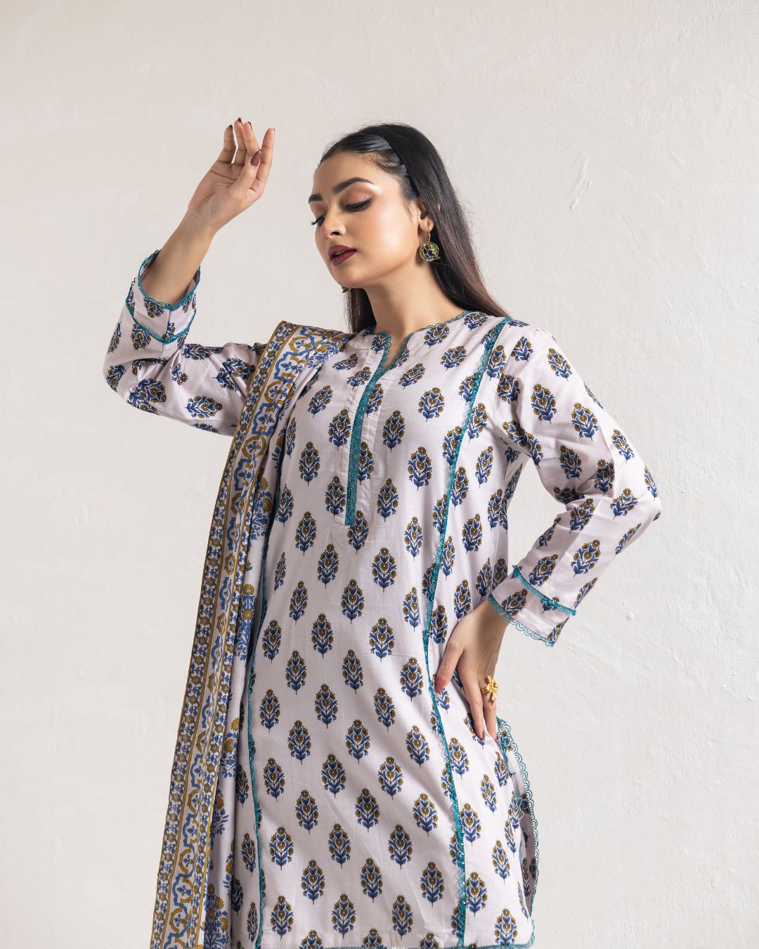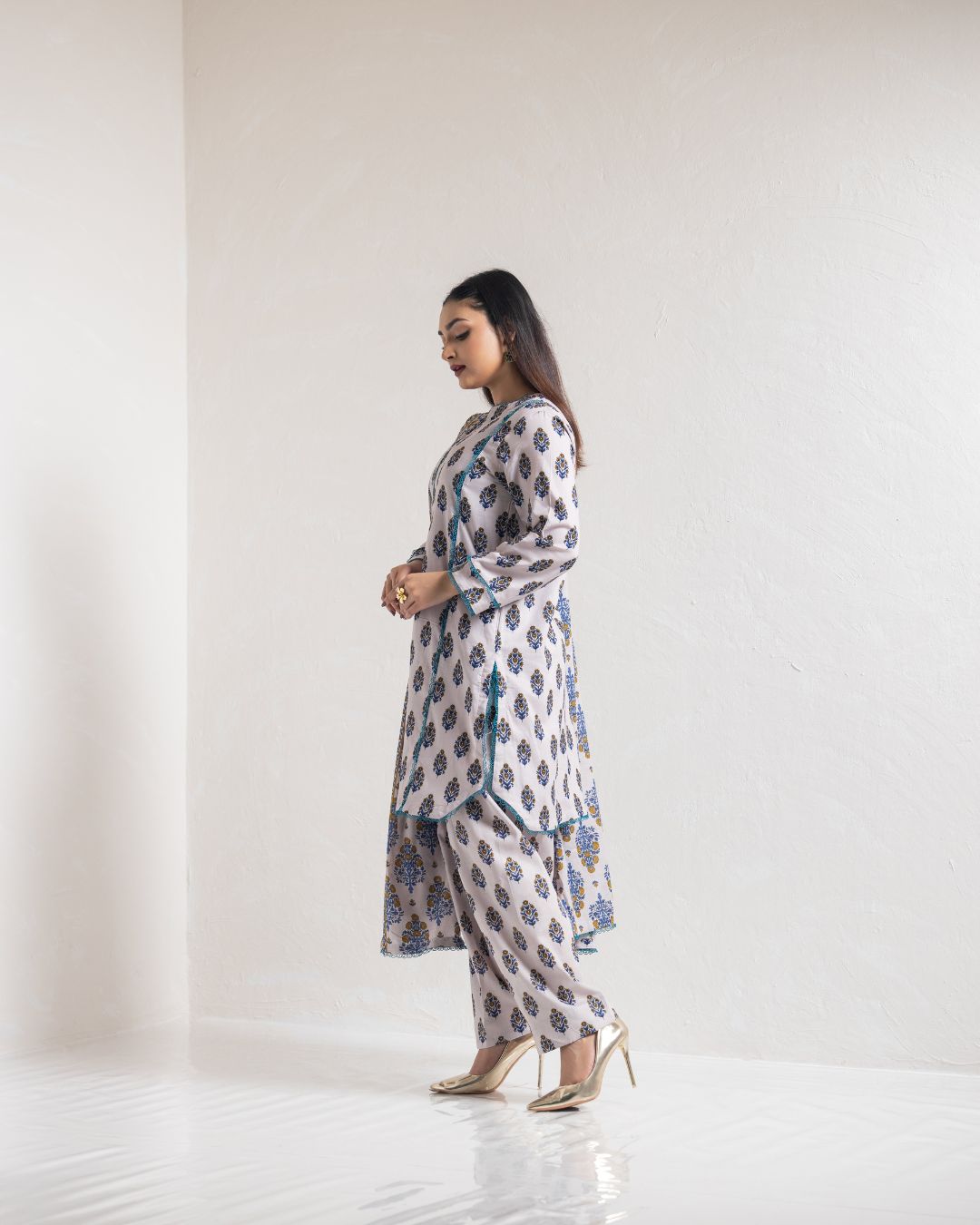 | Kameez: Regular Kameez- Short with Panel | Pant: Farshi Shalwar | |||||