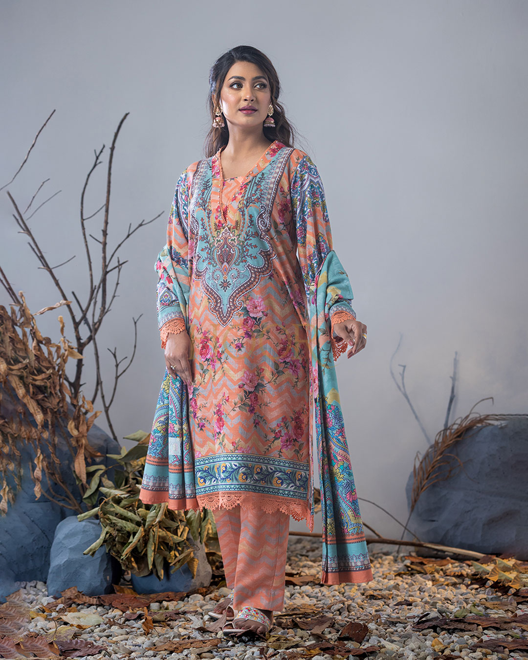 Colorful prints perfect for this cosy season — crafted in premium digital-printed khaddar with matching printed shalwars. A warm, stylish, and comfortable winter look for everyday wear.