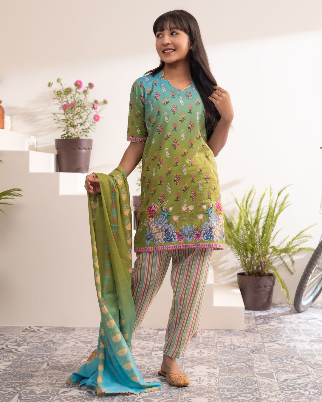Details: A comfortable yet fashionable set featuring a kameez and Modern cut pants.