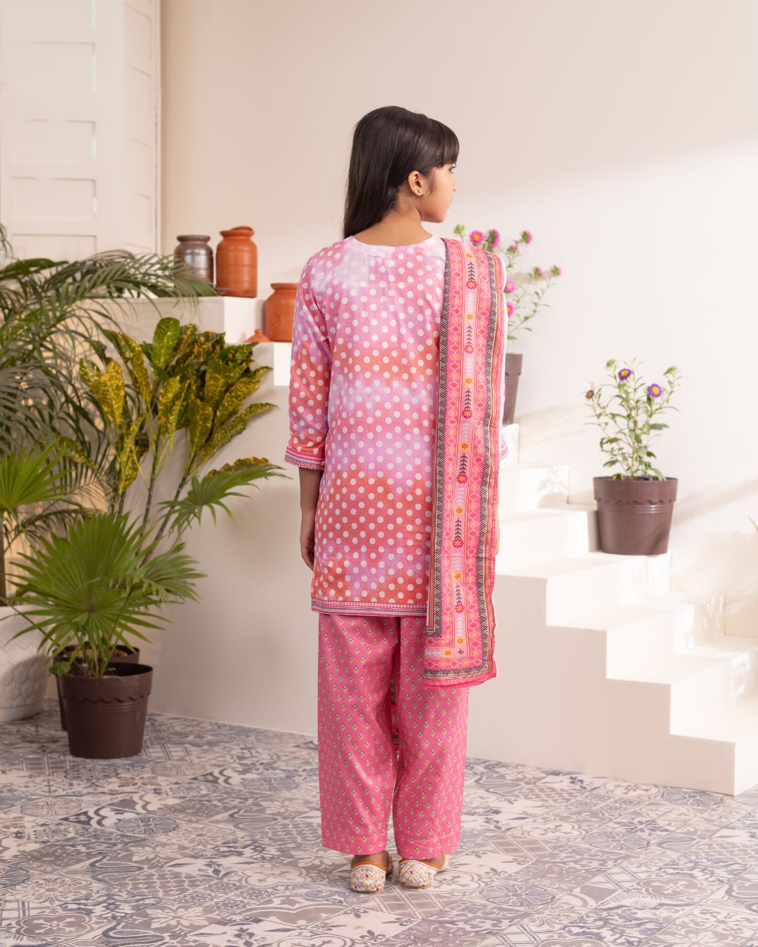 Details: Elegant kameez paired with relaxed Aladdin pants for a stylish and comfortable look.