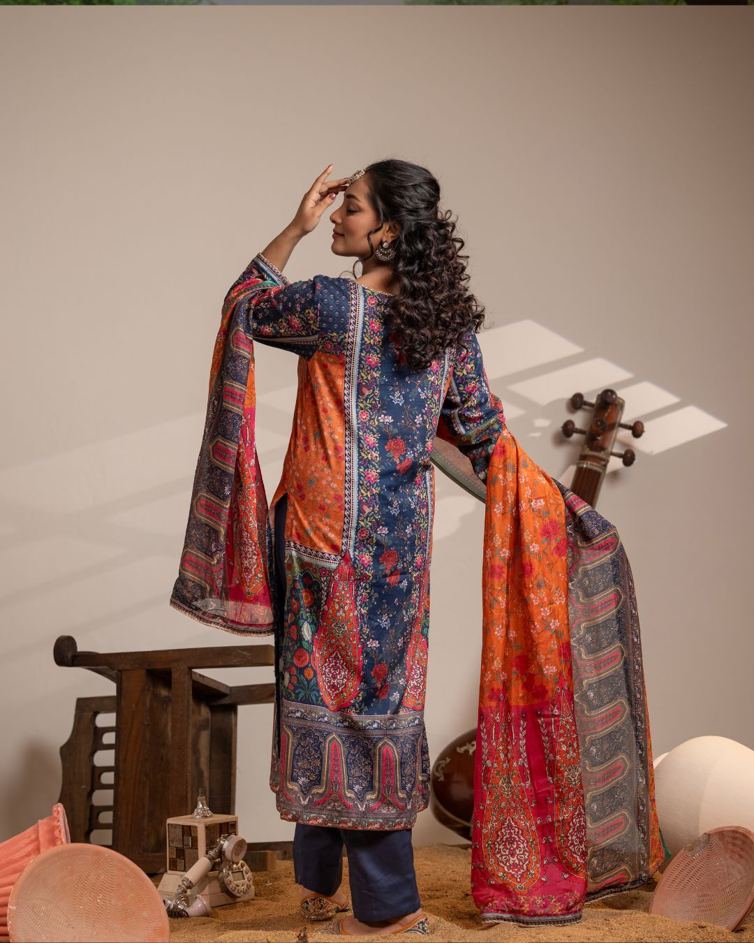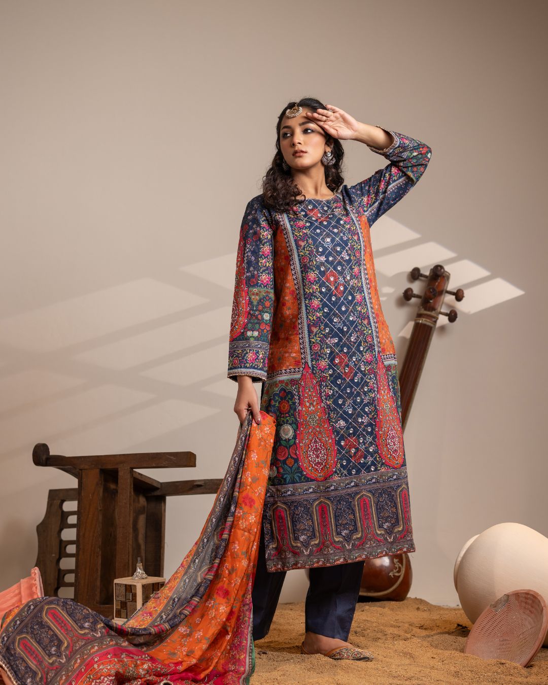 Shirt Details: Digital Printed Lawn Shirt with Karchupi Embroidery-3.25 Yards