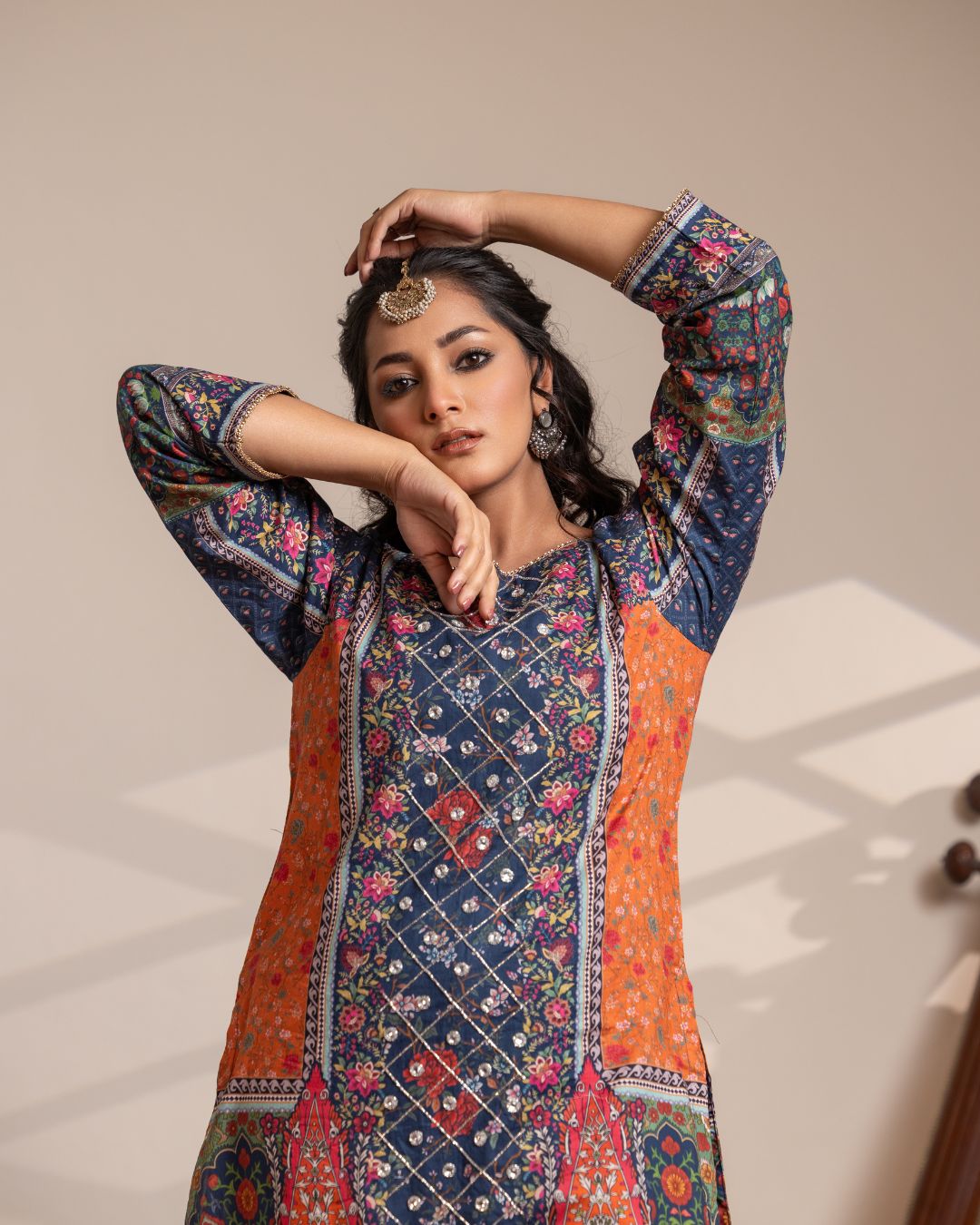 Details: Experience timeless elegance with our regular long kameez, perfectly paired with straight pants for a chic everyday look. The addition of exquisite kurcupi embroidery adds a touch of bling, elevating this ensemble. Ideal for both casual outings and more polished occasions, this outfit seamlessly combines comfort with style, making it a versatile choice for any wardrobe.
