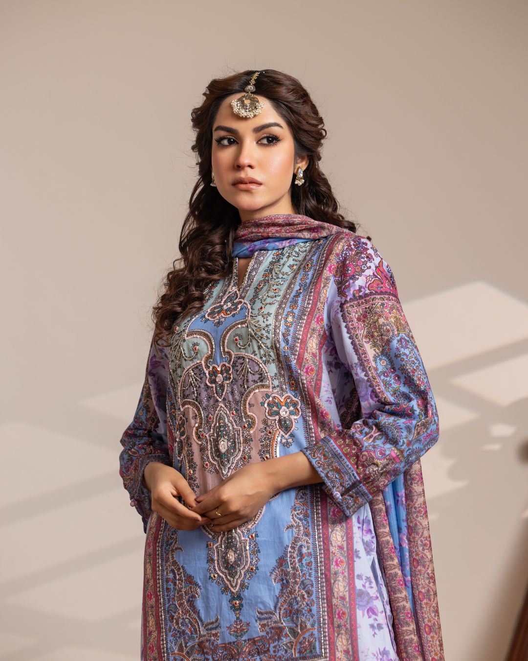 Shirt Details: Digital Printed Lawn Shirt with Karchupi Embroidery-3.25 Yards