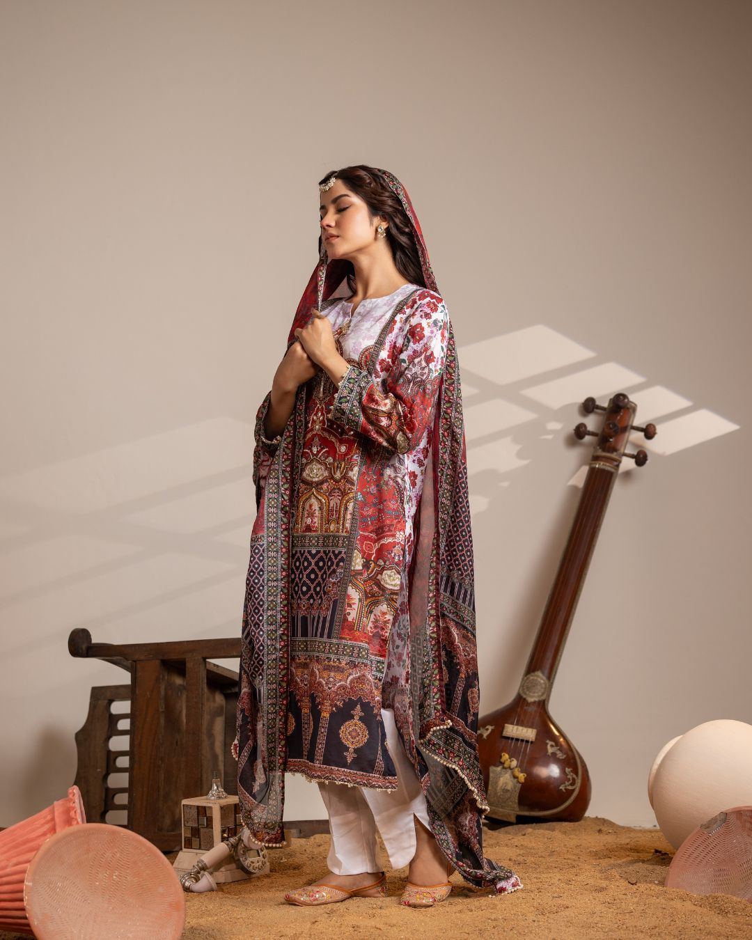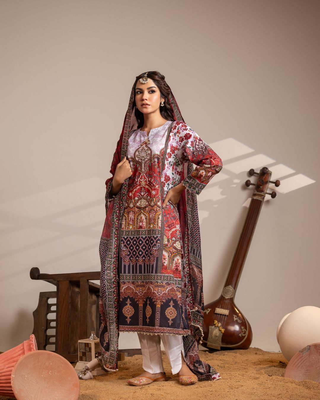 Dupatta: Digital Printed Medium Silk -2.60 Yards