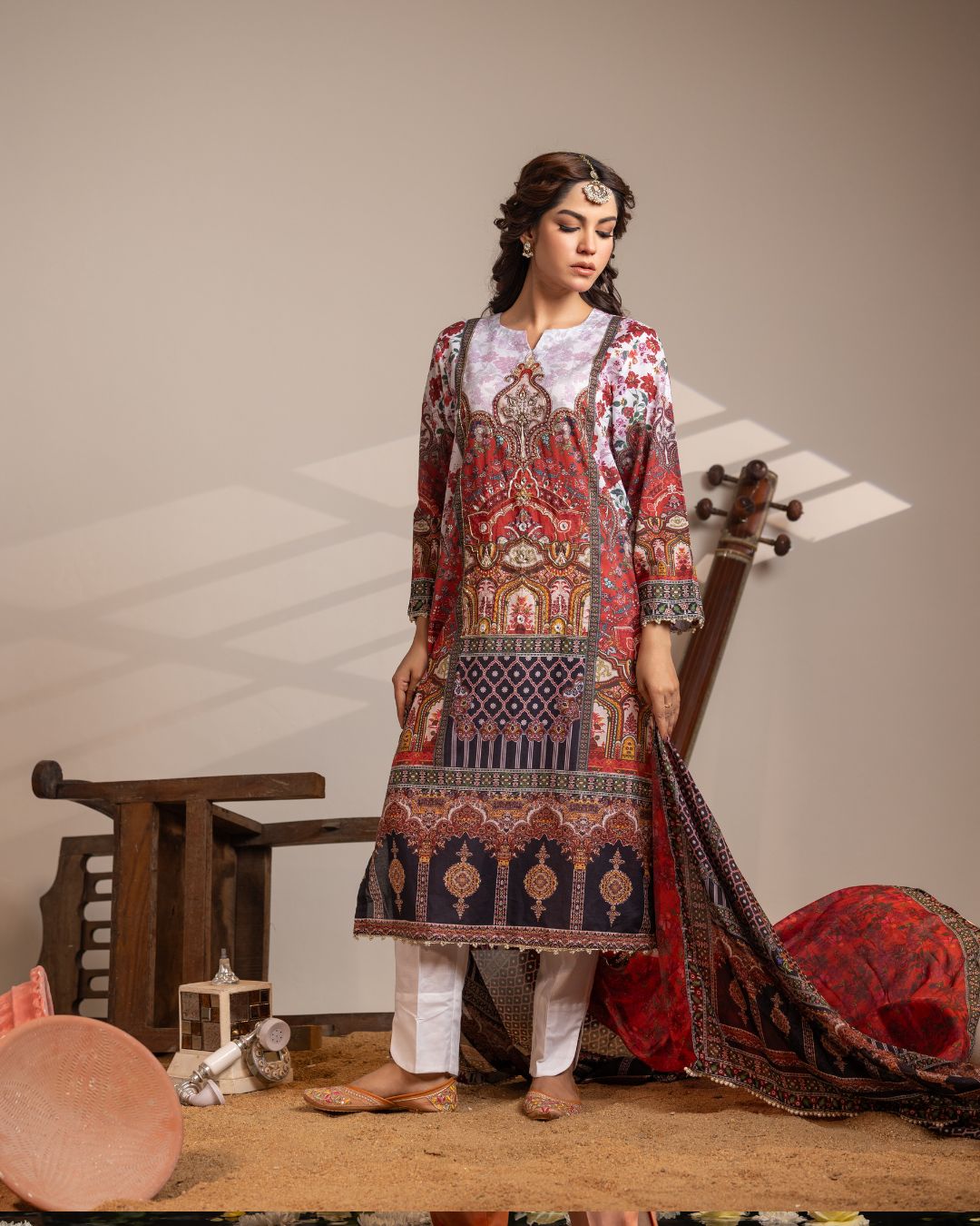 Shirt Details: Digital Printed Lawn Shirt with Karchupi Embroidery-3.25 Yards