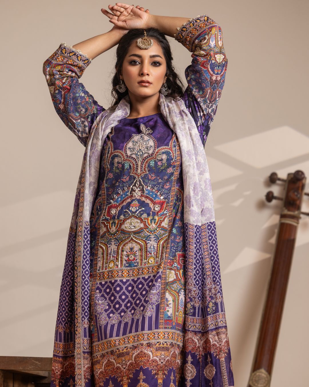 Shirt Details: Digital Printed Lawn Shirt with Karchupi Embroidery-3.25 Yards
