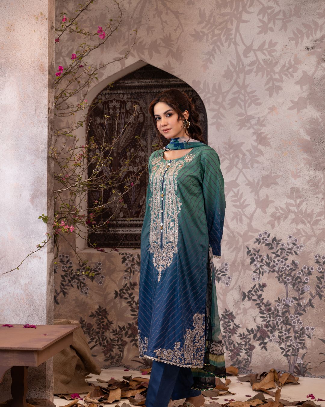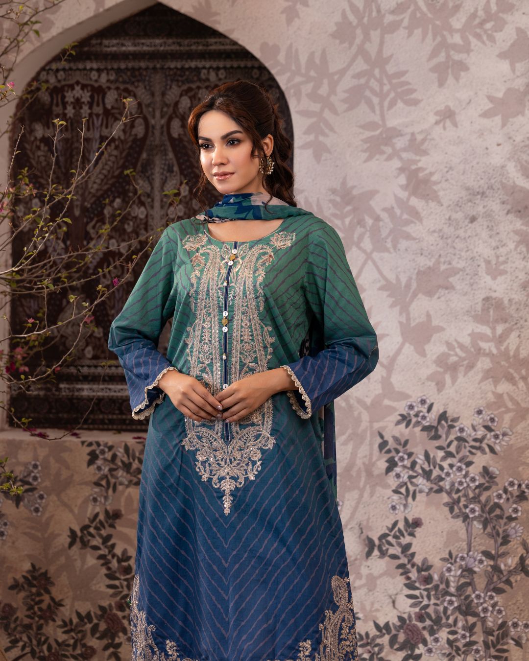 Shirt Details: Digital Printed Lawn Shirt with Lurex and Sequin Embroidery-3.5 Yards