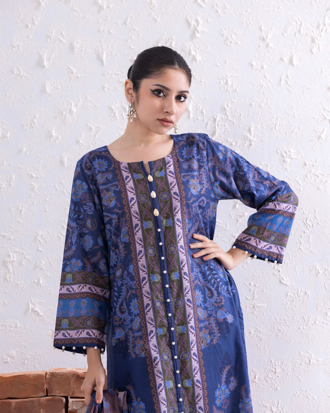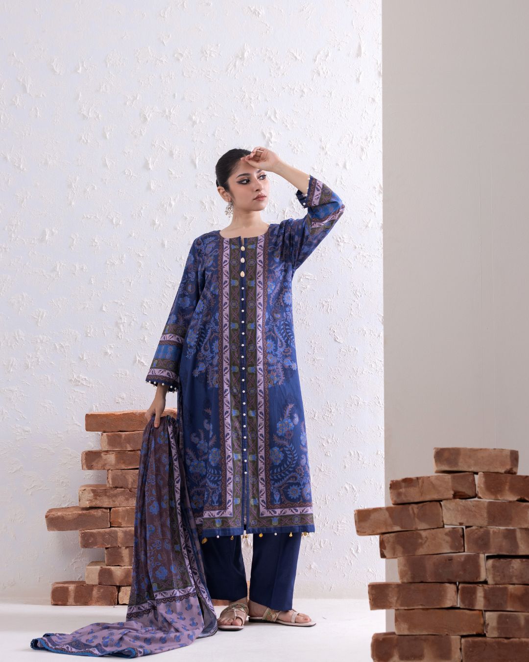 Details: An effortlessly chic digital printed lawn ensemble, pairing a regular-fit kameez with cotton straight-cut pants and a matching lawn dupatta.